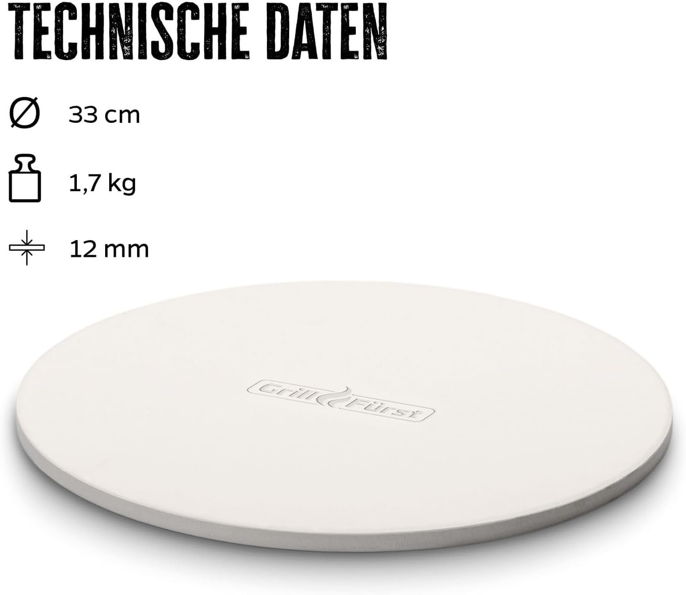 حجر بيتزا دائري من الكوردييريت، قطره 33 سم، مناسب للشواء أو الفرن، يعمل على شواية غاز أو فحم أو شواية كهربائية.