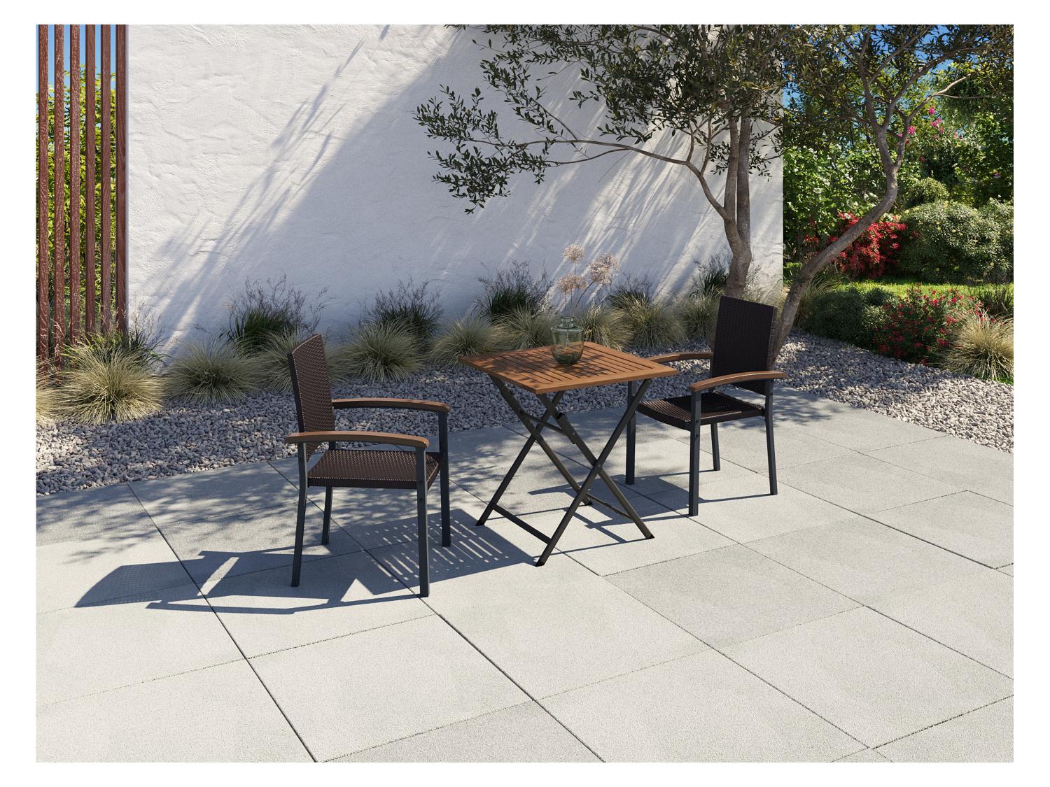 متينة وعملية: سطح الطاولة مصنوع من خشب صلب مُعالج ضد العوامل الجوية، وإطار من الألومنيوم مع طبقة حماية بالبودرة.