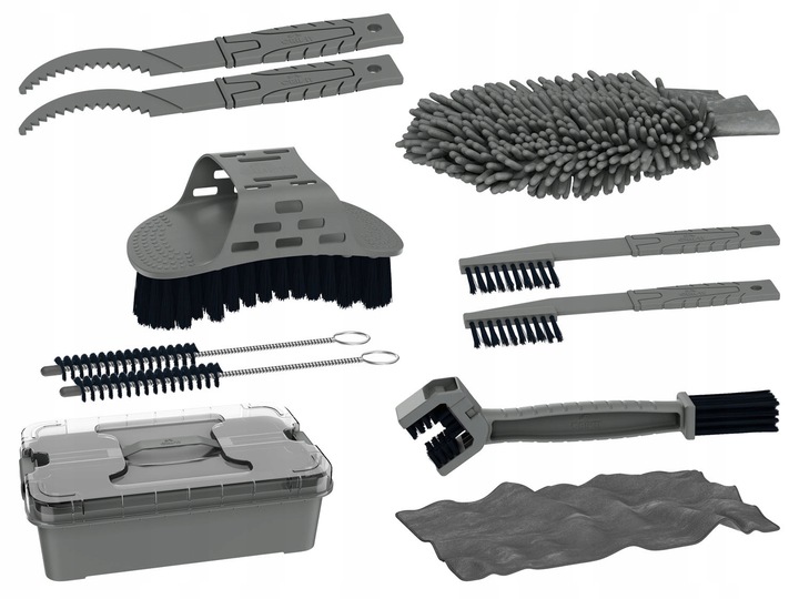 احرص على بقاء دراجتك نظيفة ومرتبة مع طقم أدوات تنظيف الدراجات من CRIVIT. يأتي الطقم في علبة عملية مع مقبض للحمل لتسهيل التخزين والتنقل. يشمل 10 أدوات متنوعة تساعدك على تنظيف جميع أجزاء الدراجة بكفاءة وسهولة.