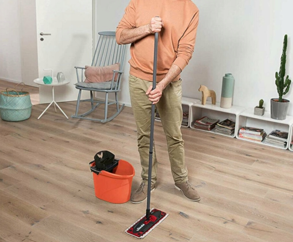 تتميز الممسحة بتصميم مسطح مع عصا ثلاثية الأجزاء قابلة للطي، مما يسمح بالوصول بسهولة إلى الأماكن الضيقة وتحت الأثاث. كما يوفر نظام العصر PowerPress المدمج في الدلو عصرًا بدون استخدام اليدين، ليبقي يديك نظيفتين وجافتين ويضمن مستوى الرطوبة المثالي لجميع أنواع الأرضيات.