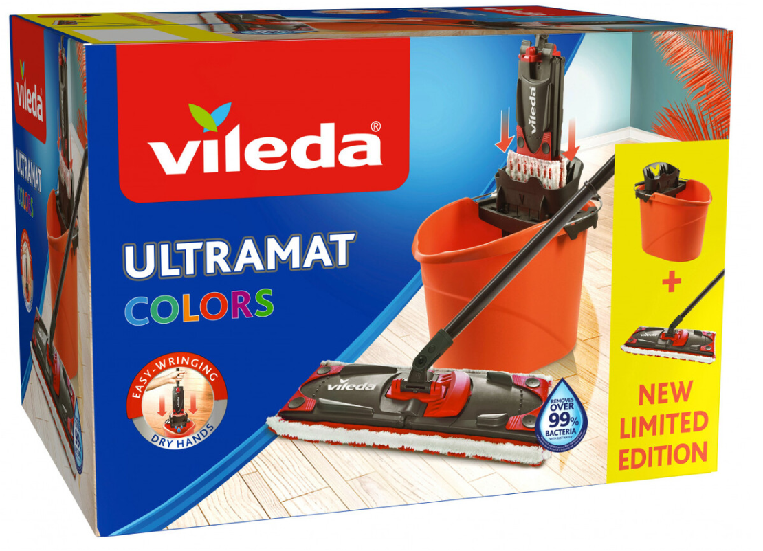 احصلي على تنظيف فعّال وسهل مع طقم ممسحة Vileda Ultramat 2 في 1 الإصدار المحدود باللون المرجاني الأنيق. يأتي هذا الطقم الكامل جاهزًا للاستخدام، ويجمع بين الأداء العالي والراحة القصوى أثناء التنظيف دون الحاجة للانحناء أو لمس الماء.