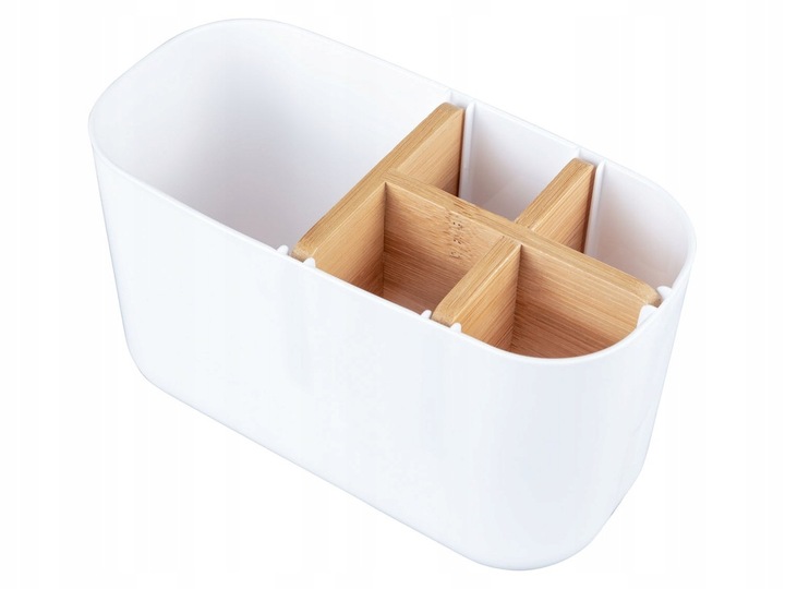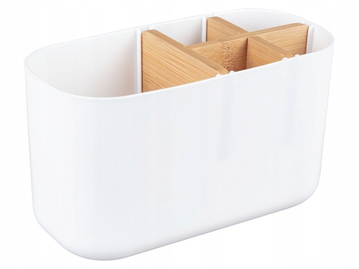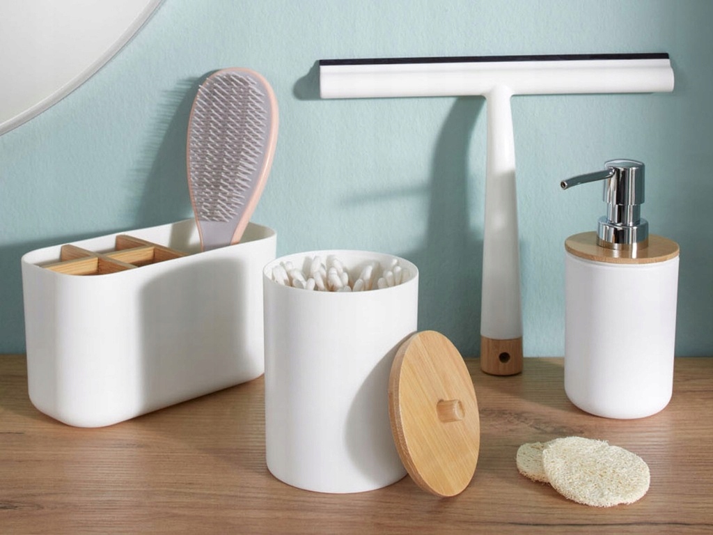 منظم الحمام من LIVARNO Home يجمع بين البساطة والأناقة بفضل دمج البامبو الطبيعي مع البلاستيك المتين المقاوم للكسر. تصميمه العصري والانسيابي يجعله مثاليًا لأي حمام حديث، ويوفر مساحة عملية لحفظ معجون الأسنان والفرش (بما في ذلك الفرش الكهربائية).