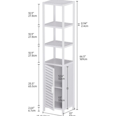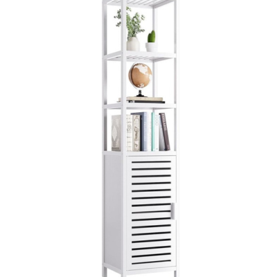 خزانة حمام طويلة وضيقة من الخيزران الأبيض – مع أرفف قابلة للتعديل
