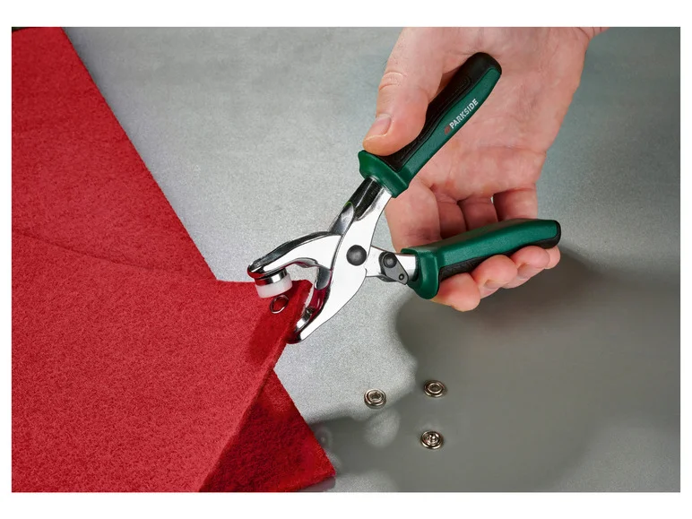 مجموعة شاملة وقوية مناسبة للأعمال اليدوية والخياطة والجلود، تمكّنك من ثقب المواد المختلفة وتركيب العيون (Ösen) أو الكبسات (Druckknöpfe) بسهولة ودقة.
