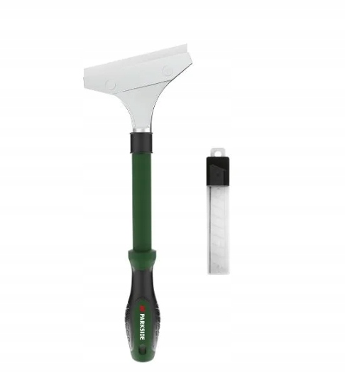 احصل على كاشطة PARKSIDE متعددة الاستخدام مع شفرة مائلة بعرض 100 ملم، مصممة لإزالة الطلاء، ورق الحائط، الغراء، وأي بقايا صعبة على الزجاج والأسطح المختلفة. تحتوي على مقبض مزدوج إرجونومي مبطن بالنايلون لراحة اليد وتحكم دقيق، بالإضافة إلى 6 شفرات احتياطية في علبة بلاستيكية للحفاظ على فعالية العمل لفترة طويلة.