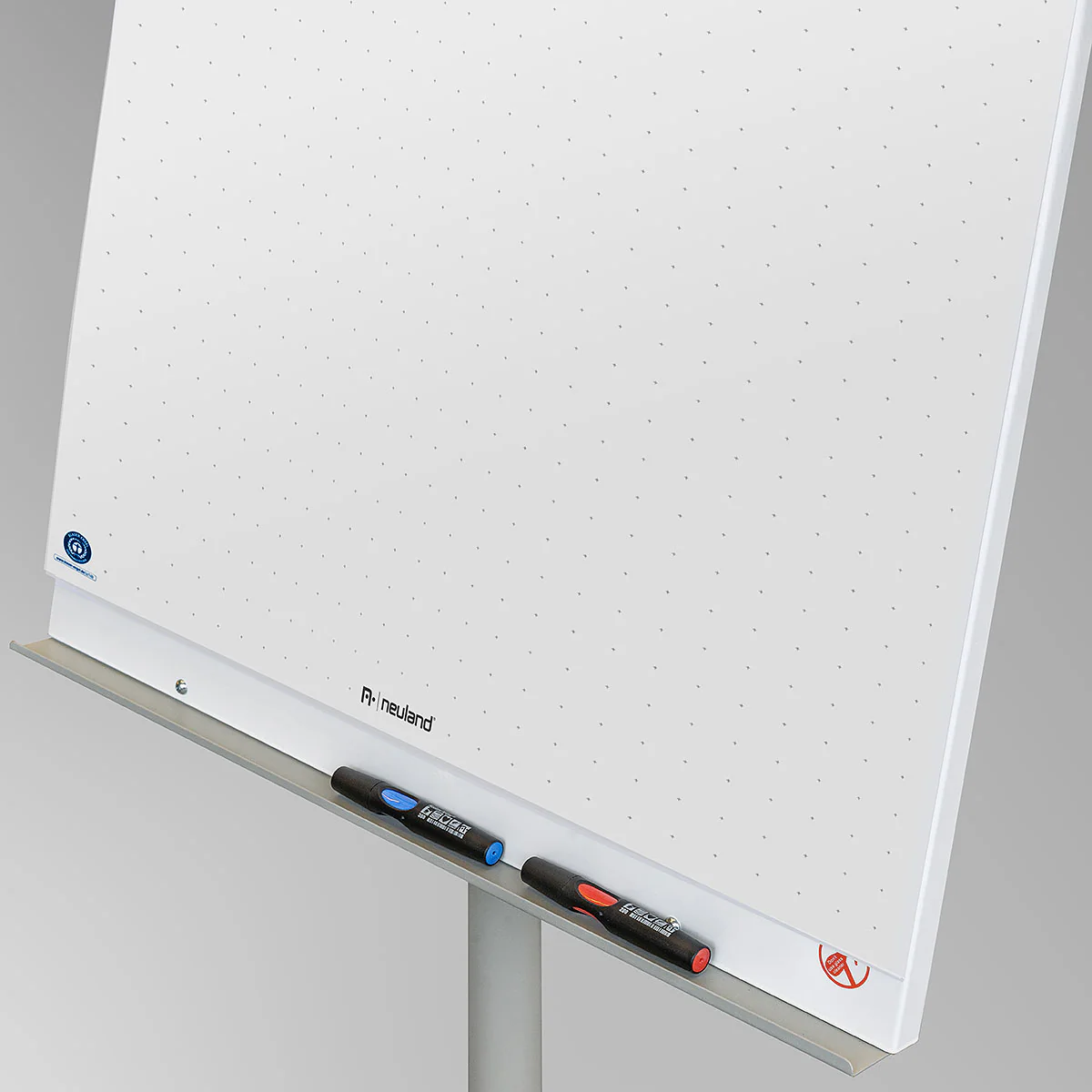 ولمزيد من التنظيم، تم تزويد اللوحة بدرج عملي للأقلام في الأسفل، مما يحافظ على أدوات الكتابة في متناول اليد أثناء العرض. صُنعت هذه اللوحة حصريًا لشركة نيولاند بموجب ترخيص، لتوفر جودة عالية وأداء موثوق في بيئات العمل والتعليم.