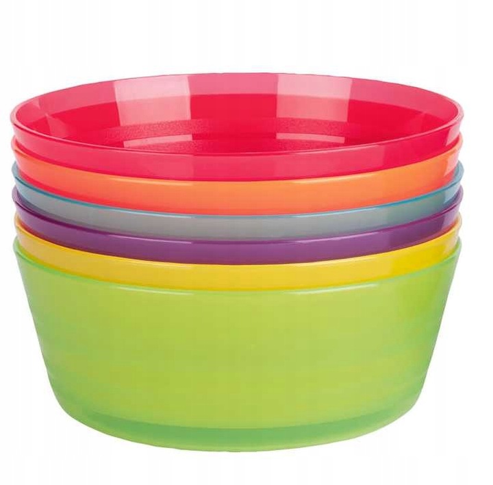 مجموعة من 6 أطباق بلاستيكية ملونة