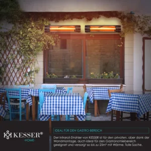 Flexible adjustable: this powerful KESSER infrared heater has 3 switching levels (800 W, 1600 W, 2500 W) and comes with an additional wall bracket. You can use the included remote control to set up. This is a wall heater which is therefore flexible and you can change the location as desired.