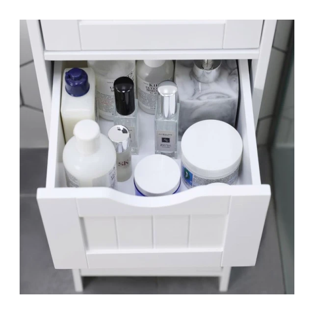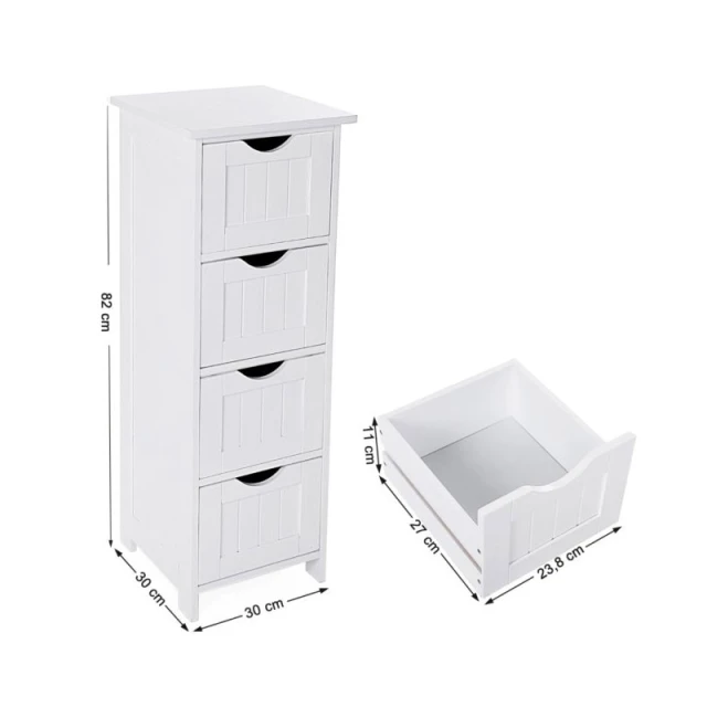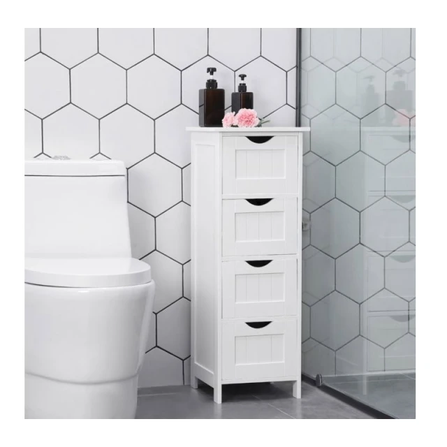 خزانة حمام عمودية من Songmics مع 4 أدراج – خشب MDF مقاوم للرطوبة – 30 × 30 × 82 سم (موديل LHC40W)