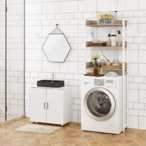 خزانة غسالة، خزانة فوق المرحاض، تنظيم الحمام، أثاث غرفة الغسيل، خزانة تخزين، SureDeal، رفوف خشبية، خزانة موفرة للمساحة