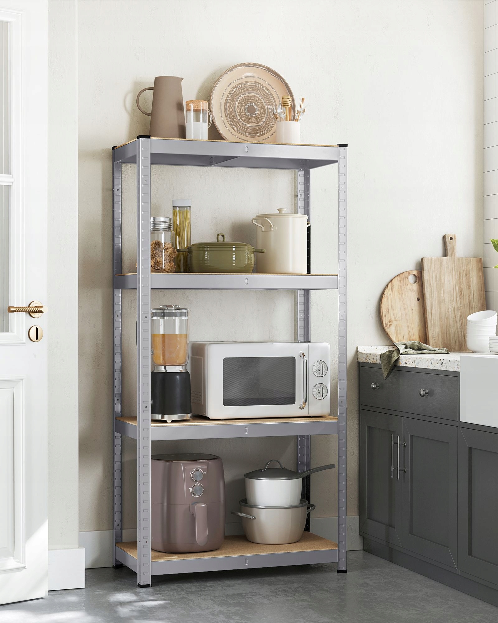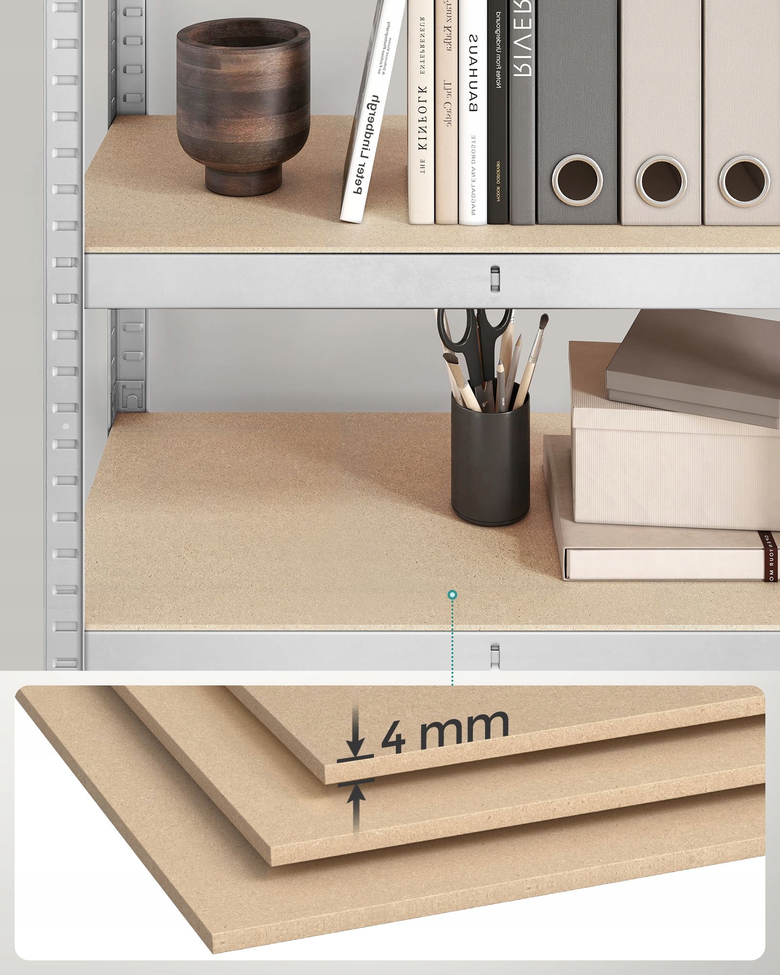 حل تخزين قوي وعملي من SONGMICS، مثالي للاستخدام في المستودعات، المرائب، الورش، الأقبية أو غرف التخزين. يتكوّن الطقم من رفّين معدنيين مع أرفف من ألواح MDF عالية المتانة، ويوفر مرونة كبيرة في الاستخدام بفضل إمكانية تعديل الارتفاع أو تقسيم الرفوف إلى وحدتين منفصلتين.