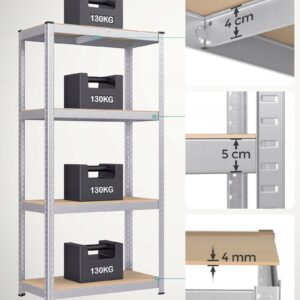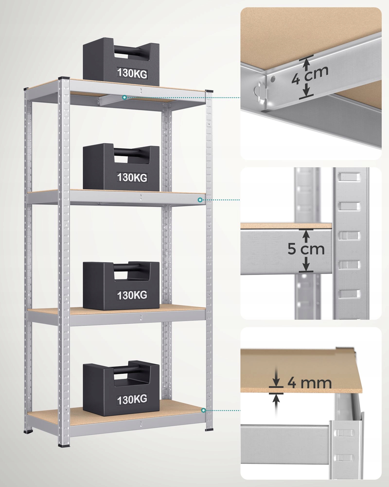 تحمل عالي جدًا: كل رف يتحمل حتى 130 كغ، مناسب لتخزين الأدوات الثقيلة، المعدات، والمواد الصناعية.