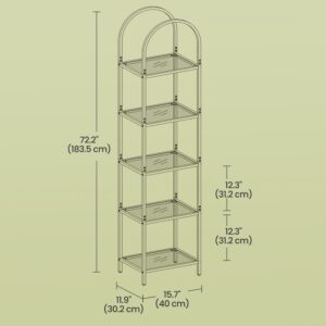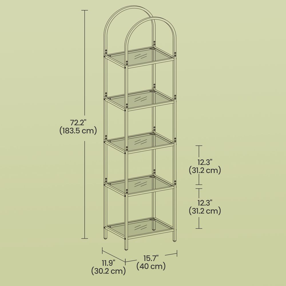 أضف لمسة عصرية وأنيقة إلى منزلك مع رف التخزين والعرض VASAGLE ذو 5 طبقات، المصمم خصيصًا لعرض مقتنياتك المفضلة بأسلوب راقٍ وجذاب. يتميز هذا الرف بتصميمه المقوس الأنيق وأرففه الزجاجية الشفافة التي تمنح المكان إحساسًا بالاتساع والفخامة، مما يجعله خيارًا مثاليًا لغرفة المعيشة أو المكتب أو حتى الحمام.