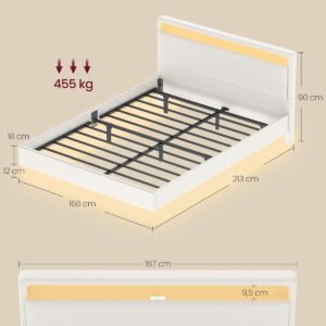 حوّل غرفة نومك إلى مساحة عصرية ومريحة مع السرير المزدوج من VASAGLE. يتميز بتصميم بصري عائم يخلق شعورًا بالخفّة والراحة، مع إضاءة LED قابلة للتعديل لتوفير الجو المناسب لنوم هادئ أو أجواء مبهجة.