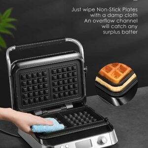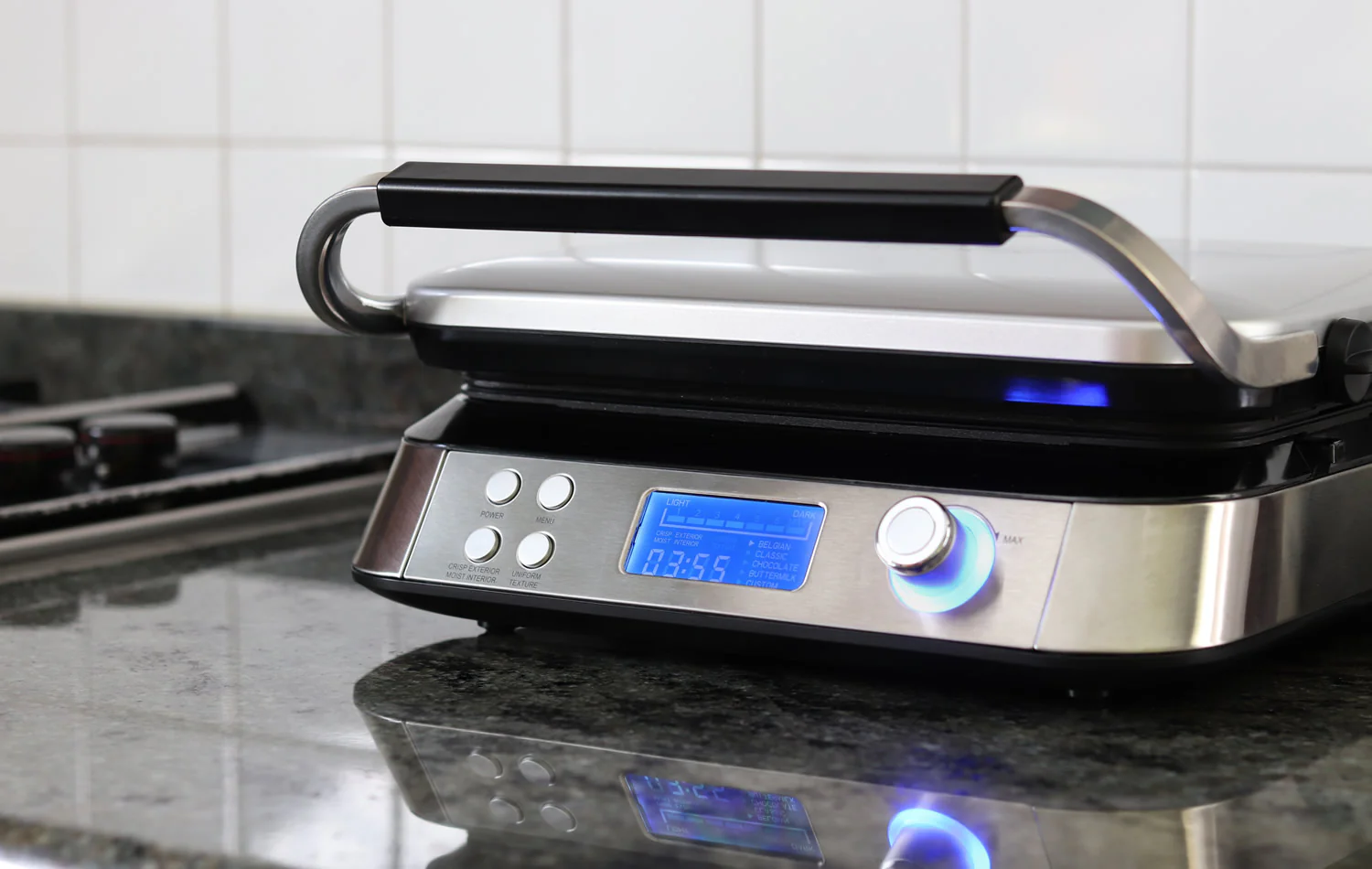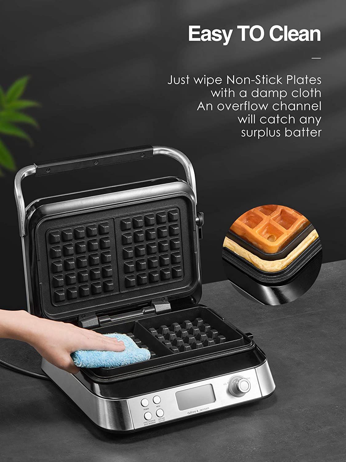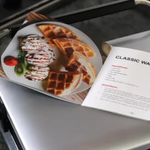 يمنحك شاشة LCD الرقمية وأزرار التحكم السهلة تجربة استخدام مريحة ودقيقة، بينما يضفي التصميم الأنيق المصنوع من الفولاذ المقاوم للصدأ لمسة عصرية وفاخرة على مطبخك. كما تتضمن العبوة كتاب وصفات يساعدك على تحضير وافل متنوع ولذيذ بسهولة، حتى لو كنت مبتدئًا.