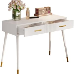 اجعل روتينك الصباحي أكثر سهولة وأناقة! مع هذا الطقم، لن تحتاج بعد الآن للبحث في أرجاء المنزل عن مستحضرات التجميل. اجلس على الكرسي المريح والمبطن، واستخدم المستحضرات المخزنة بطريقة منظمة في طاولة التزيين البيضاء. من الآن فصاعدًا، ستكون كل صباحاتك رائعة ومرتبة.