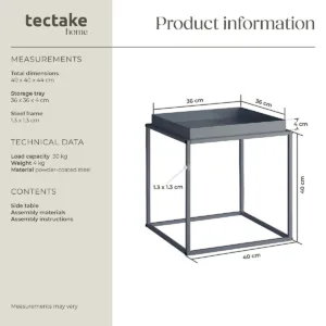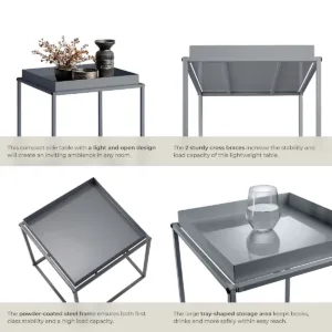 طاولة جانبية Cambridge بمستوى صينية – 40 × 40 × 44 سم – رمادي داكن