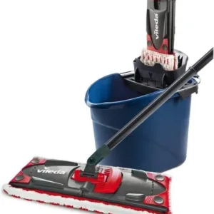 طقم متكامل من Vileda لتنظيف جميع أنواع الأرضيات الصلبة بسهولة وكفاءة، يشمل دلو + ممسحة + قطعة مسح، مع تصميم عملي يضمن نظافة مثالية دون عناء.