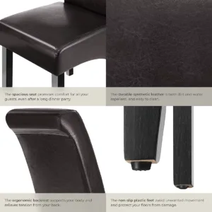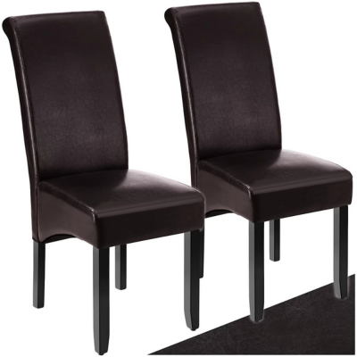 طقم كرسيي طعام بتصميم مريح ومسند ظهر مرتفع – مبطن بجلد صناعي – بني (قطعتان)
