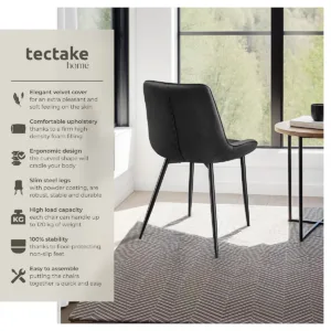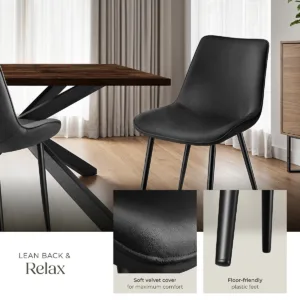 أضف لمسة أناقة عصرية إلى منزلك مع طقم كرسيين مونرو الأسود بتصميم مخملي ناعم وأرجل فولاذية رفيعة. يجمع هذا الطقم بين البساطة الراقية والراحة اليومية، ليكون مثالياً لغرفة الطعام أو ككراسي جانبية مميزة.