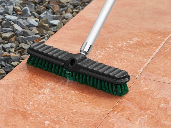 فرشاة PARKSIDE مصممة لتوصيل سريع على خراطيم الحدائق، مثالية لتنظيف البلاط، الممرات، الأرصفة، الواجهات، وأبواب الجراج بالماء. تأتي مع فرشتين قابلتين للتبديل: