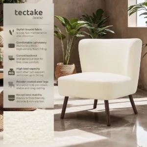 أضف لمسة دافئة وعصرية إلى منزلك مع كرسي تيدي Robina من tectake بتصميم اسكندنافي أنيق وتنجيد بوكل ناعم بلون أوف وايت جذاب. يتميز هذا الكرسي بمظهره العصري المريح الذي ينسجم بسهولة مع غرفة المعيشة أو غرفة النوم أو زاوية القراءة.