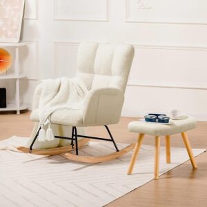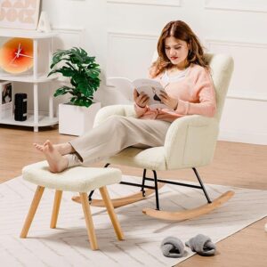 كرسي هزاز، كرسي استرخاء، كومهوما، كرسي مخملي، كرسي مع مسند قدمين، أثاث غرفة المعيشة، أثاث غرفة النوم، كرسي مريح، لون بيج