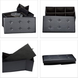 مسند قدم وصندوق تخزين قابل للطي من Relaxdays، 6 أقسام، جلد صناعي، أسود، 38×76×38 سم