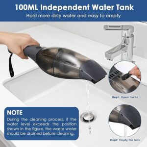سهولة الفك والتنظيف: رأس تنظيف قابل للإزالة مع خزان مياه متسخ بسعة 100 مل، سهل التفريغ والتنظيف.