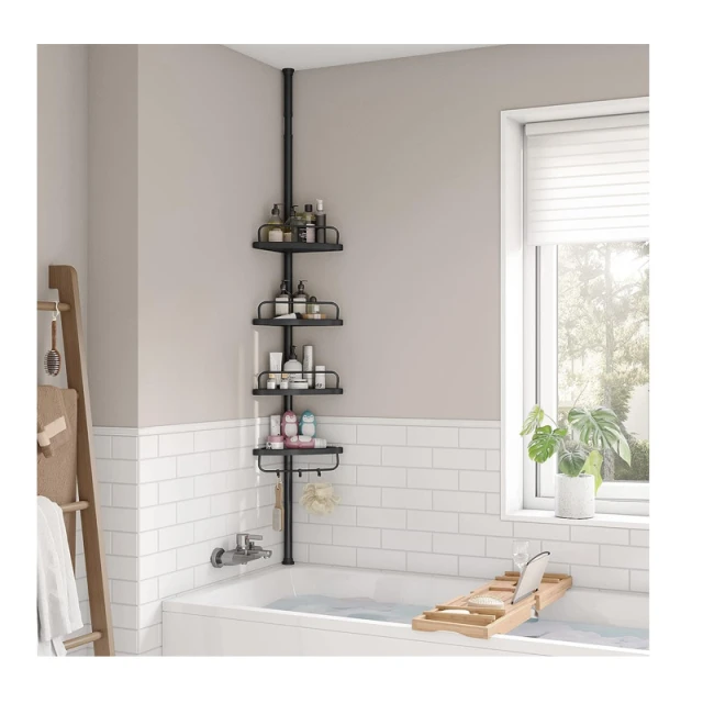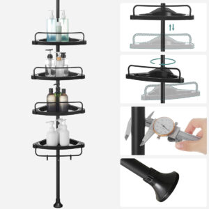 منظم حمام عمودي قابل للتعديل من SONGMICS مع 4 رفوف و3 خطافات – ارتفاع 85 إلى 305 سم – أسود (BCB001B01)