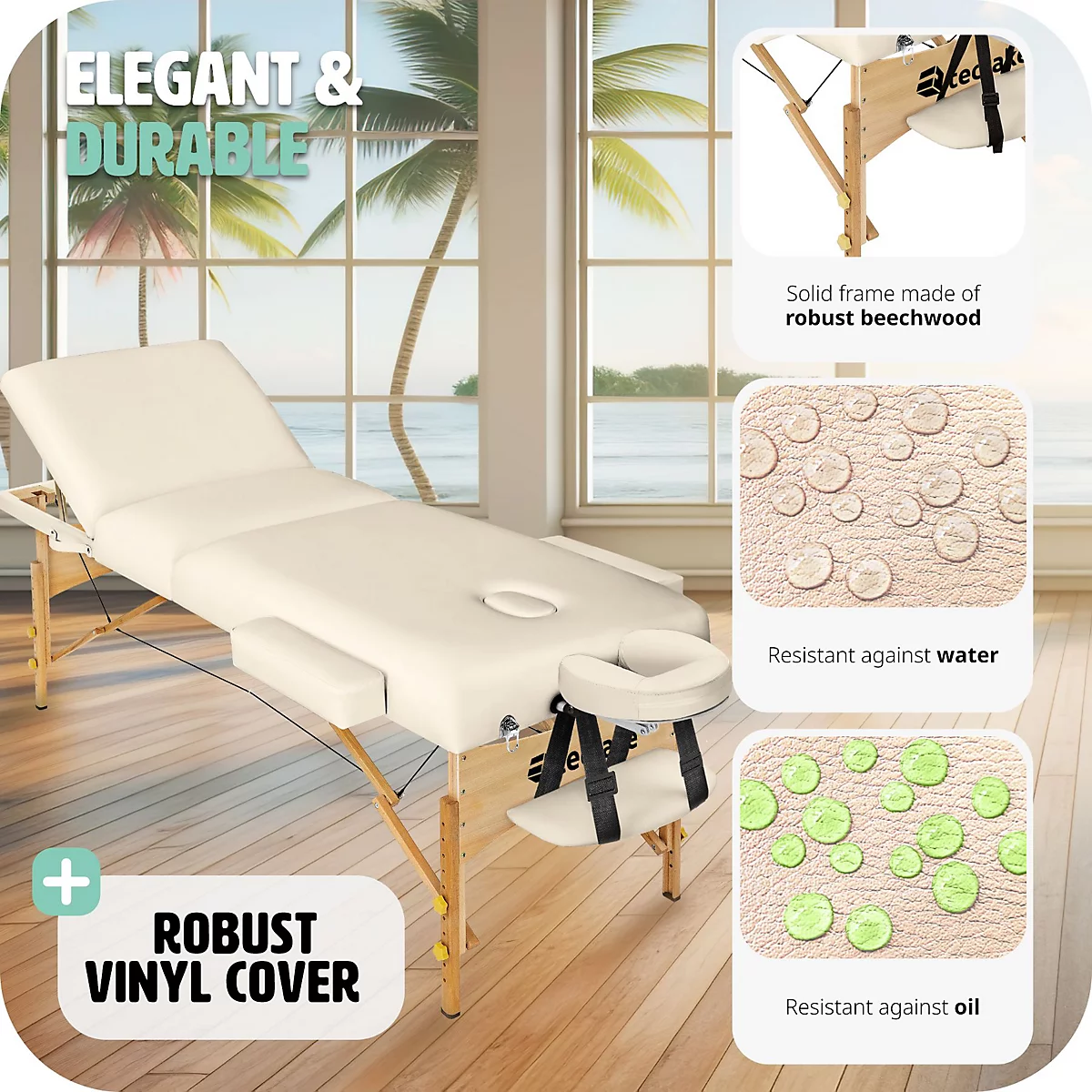 ارتقِ بمستوى خدماتك وقدم لعملائك تجربة استرخاء ملكية مع طاولة المساج الاحترافية من TecTake. صُمم هذا السرير ليدوم طويلاً، حيث يجمع بين الرفاهية القصوى والمتانة العالية التي تلبي احتياجات المعالجين المحترفين ومراكز السبا.
