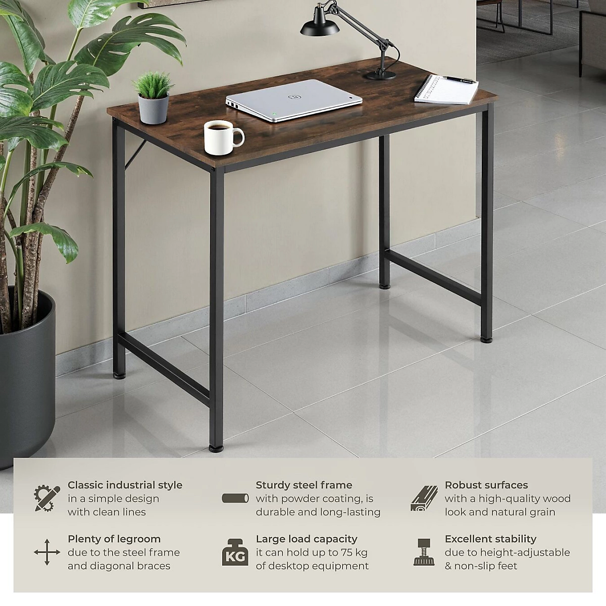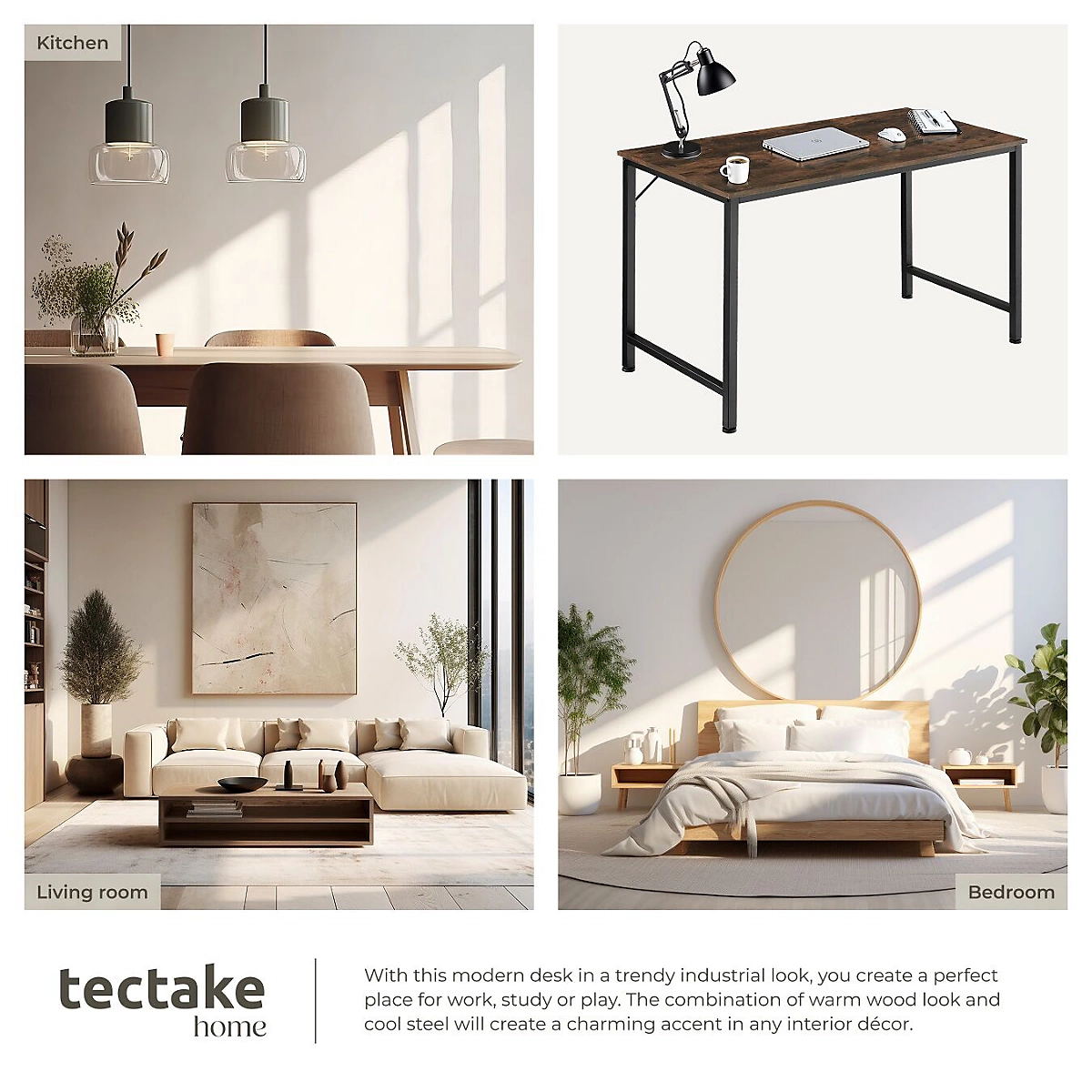اجعل مساحة عملك تنبض بالإبداع مع مكتب Jenkins من TecTake. يجمع هذا المكتب بين برودة الفولاذ الأسود ودفء الخشب الريفي الداكن، ليعطيك لمسة “الفينتج” (Vintage) الأنيقة التي تناسب المكاتب المنزلية، غرف الدراسة، أو حتى زوايا الألعاب.