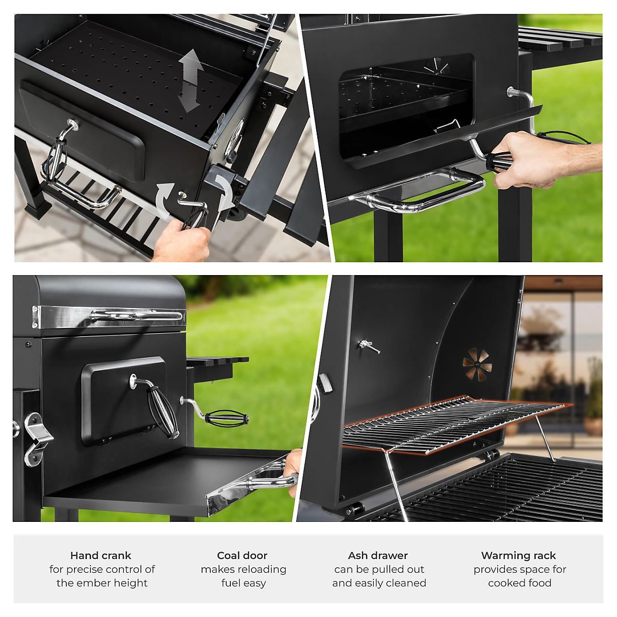 شواية فحم BBQ Florian – مع عجلات، إمداد هواء قابل للتعديل وشاشة عرض درجة الحرارة – أسود