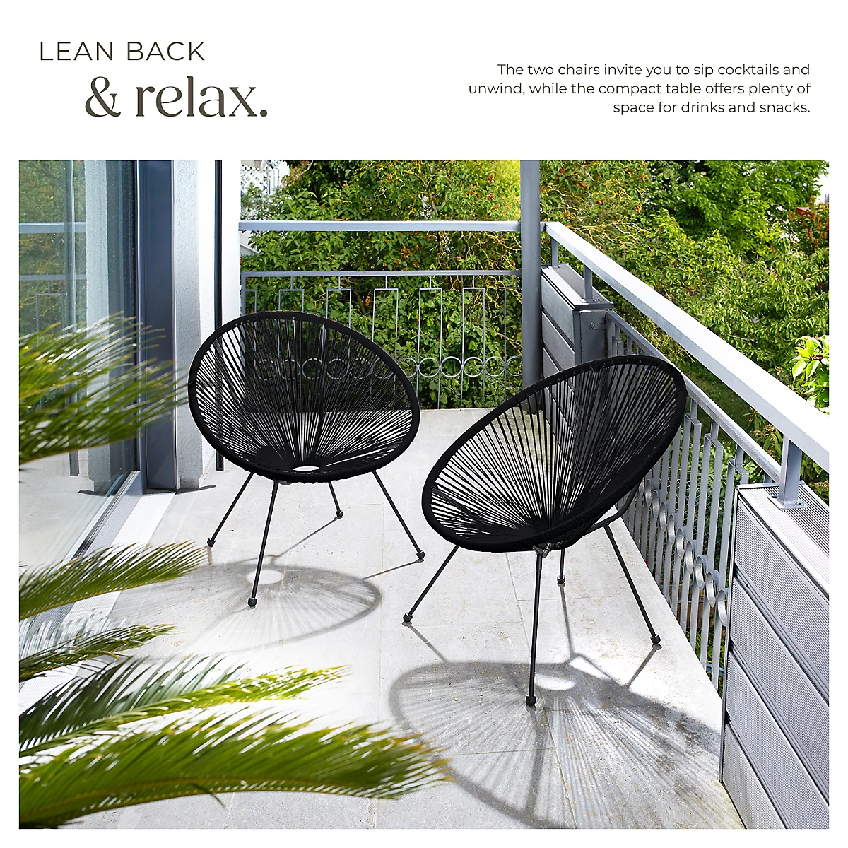 اجمع بين سحر الخمسينيات والراحة الحديثة مع طقم كراسي Acapulco من TecTake. بفضل تصميمها البيضاوي الشهير وخيوطها المرنة، توفر هذه الكراسي تجربة جلوس فريدة تشعرك بالخفة والاسترخاء، سواء كنت في شرفتك أو داخل غرفة المعيشة.