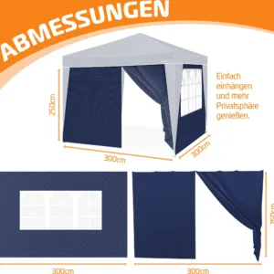 Add both style and function to your gazebo with our high-quality, modern sidewalls. These practical side panels feature a convenient zipper and 3-part window, and can be quickly and easily attached to your 3x3m gazebo. Enjoy summer days in the garden or on the patio with protection from strong sunlight and bothersome wind.