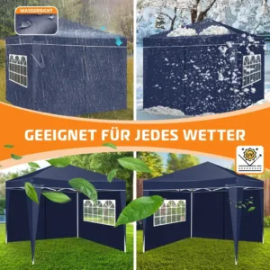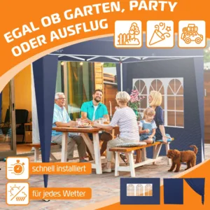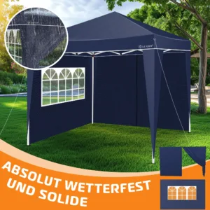 The roof covering is made of water-repellent 220D Oxford fabric (100% polyester) and offers UV 50+ protection. Thanks to this durable material, the sidewalls can be easily cleaned with water after the season, keeping your gazebo looking like new year after year.