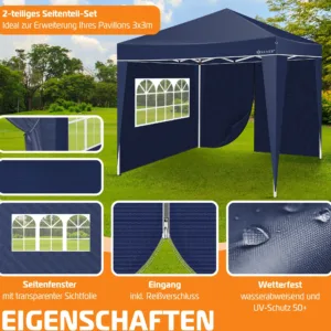 KESSER® 2x Sidewalls for 3x3m Gazebo – With Zipper & 3-Part Window | Water-Repellent | UV Protection | Includes Tie Straps