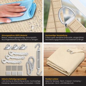 KESSER sun sail made of robust and weather-resistant HDPE, breathable fabric prevents heat build-up, shading factor of approx. 85%, versatile use for perfect shade, uncomplicated assembly