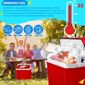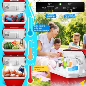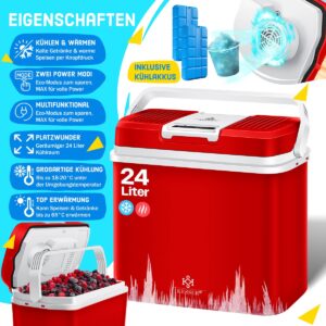 COOLING AND HEATING: The 24-liter Kesser cool box provides you with cold drinks in the summer and hot food in the winter. This all-rounder is equipped with both a cooling and heating function. Thanks to the thermostat-controlled keep-warm function, dishes can be kept warm up to a temperature of 65 degrees Celsius.