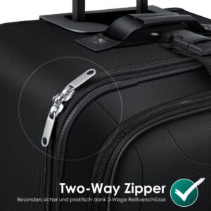 Thanks to the two-way zipper, the suitcase can be opened and closed quickly and easily on both sides of the zipper. With the adjustable safety straps, you can also attach your hand luggage to the suitcase and thus transport it perfectly, without having to take another piece of luggage with you . Benefit from excellent quality and safe workmanship with the suitcase set from KESSER .