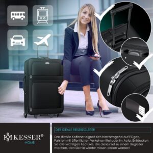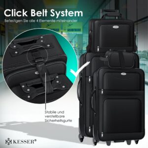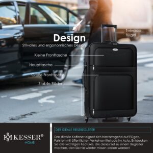 The 4-piece suitcase set from KESSER leaves nothing to be desired and is the perfect companion for your next holiday ! The 2 suitcases offer enough space for your clothes , the large bag is ideal for your laptop or care products and can be used optimally as hand luggage thanks to its handy size . Your travel documents , smartphone or wallet can be transported perfectly in the small bag . The KESSER suitcases can be transported perfectly from A to B thanks to the wheels and are therefore a handy companion even with a heavy load .