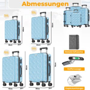 KESSER® Suitcase set – 4-piece with stylish design, sturdy ABS hard shell, 360° wheels, integrated combination lock and practical accessories such as a suitcase scale and luggage tag for carefree trave