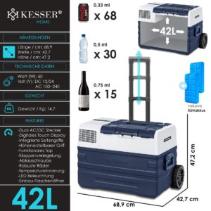 VOLUME WONDER : The KESSER compression cooler is ideal for traveling or camping. Thanks to a practical size with plenty of volume, the adventure can begin! Choose the perfect cool box so that the size of the cool box perfectly matches your needs. With the integrated cooling unit, pre-frozen cooling batteries are a thing of the past and thanks to the temperature reminder, you always have an overview.
