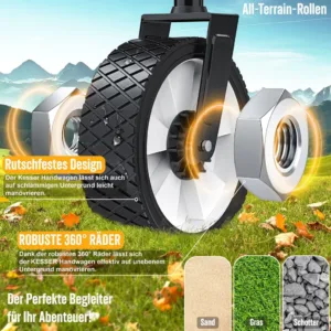 – 360° rotating front wheels made of solid rubber