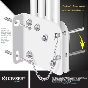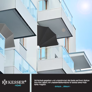 Create a comfortable and cool outdoor space with the KESSER® Balcony and Terrace Awning . This handy roller blind not only offers protection from the sun, but also provides privacy and protection from wind and rain, so you can enjoy your balcony or terrace regardless of the weather.