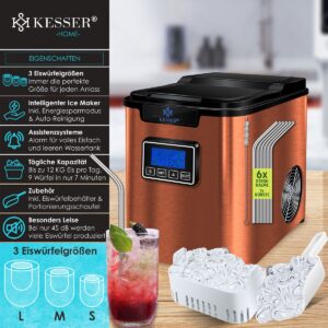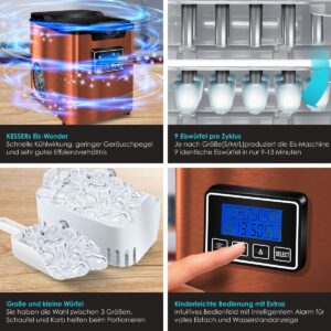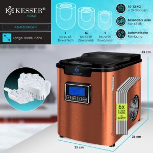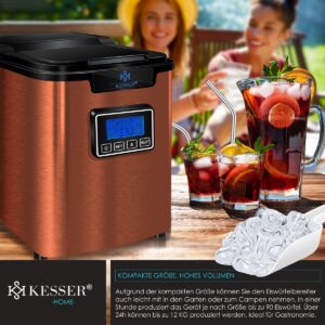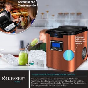 KESSER ice cube maker, 2.2 litre water tank for three selectable cube sizes, LCD display and illuminated display, warning lights for low water or full ice cube container.