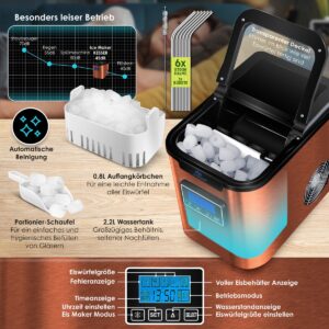 VERY PRACTICAL : The scoop provided allows you to measure out the prepared ice cubes precisely. The ice cube maker also impresses with its small dimensions and elegant housing with viewing window.