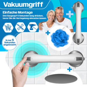Assembly is extremely simple and requires no additional tools: the wing screws can be easily tightened by hand, and the vacuum grip ensures extra security – simply press the suction cup for 5 seconds before you click the lock into place. The combination of high-quality design, environmentally friendly materials and well-thought-out functions makes the KESSER shower stool an indispensable aid for more safety and flexibility in the bathroom.