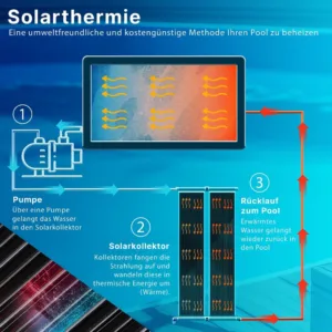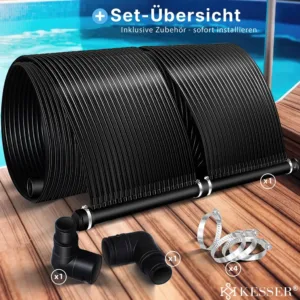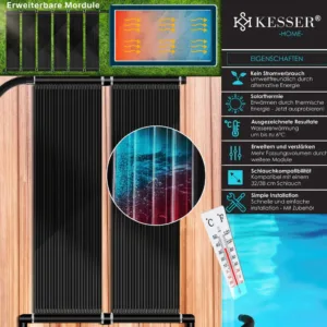 With a capacity of up to 9.2 liters , sufficient capacity is offered; the system-integrated solar heating mats are simply connected to your pool filter system and heat the inlet water via a 3-