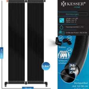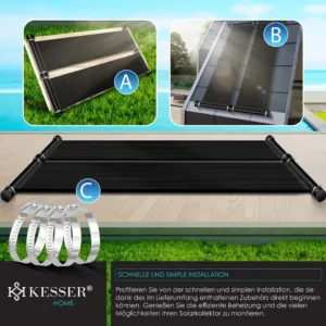 KESSER solar collector in various sizes and as a duo set for pool or outdoor swimming pool heating including hose clamps, nozzles and Teflon tape roll degrees, and thus always offers you an inviting bathing experience .